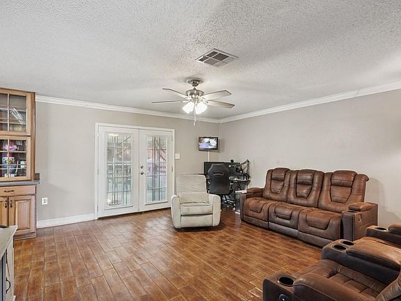 French doorsScreened in patioTiled backsplashCustom cabinetsCorian countertops