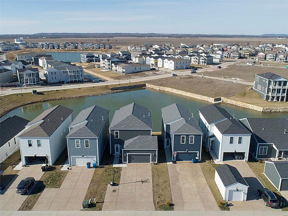 Gorgeous WATERFRONT two story in desirable New Town Beach District! Whittaker 2516-30 Elevation C, Premium Lake Lot w/TWO LARGE DECKS + concrete patio customized to 23'4"x9'9" for an outdoor retreat w/INCREDIBLE VIEWS!! Airy, bright, OPEN FLOORPLAN w/foyer, kitchen, dining area, living room, all w/showstopping views! Imagine: morning breakfasts, afternoon homework sessions, daily memory making at the IMPRESSIVE 60"x85" kitchen island! Kitchen w/walk-in pantry, 42" cabinets, and plentiful counterspace. Large dining area. Panel doors, ceiling fans, STUNNING light fixtures throughout! Owner's suite w/2nd floor balcony, WALK IN CLOSET & full bath. 2ND FLOOR LAUNDRY & multi-purpose LOFT. Unfinished basement WALKS OUT to gently sloping yard and LAKE ACCESS! Oversized two car garage w/extra driveway pour for ample off-street parking. Less than 2 years old! This one is a must see! New Town architect confirmed alleys and/or yard can be fenced to meet your family's current or future needs!