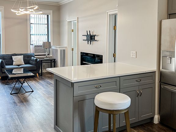 Newly renovated 2-bedroom, 1-bathroom apartment available for rent at $2,600/month! Located on the 3rd floor of a walk-up building, this unit features brand new stainless steel appliances, washer and dryer, new kitchen cabinets with Cesar stone countertops one A/C unit, and a furnished living room. Heat and water are included. Applicants must have good credit and income. Broker fee applies