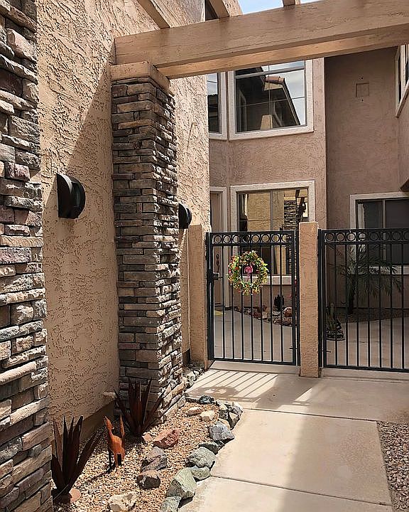 Enter this amazing townhome through a charming courtyard and newly painted exterior into soaring ceilings, freshly painted ceilings and walls with pleasing designer palette and beautiful on-trend wood plank flooring with 8 inch baseboards. Upgrades are too many to list: 2018 air conditioner, R18 insulation for garage door, Chamberlain My Q WiFi garage door opener, new water Softener, new RO system, 2020 water heater, 3 high toilets, epoxy garage floor, new hardware brushed nickel on all doors, all sinks have new brushed nickel facets, LG washer, dryer, dishwasher, microwave and French door refrigerator, stove, new carpet, Nest thermostat, patio ceiling fan, glass front door, exterior lighting, bathroom lighting, dining room chandelier..You won't find a better cared for home in Phoenix!