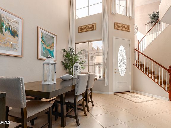 Ahwatukee beauty located in the desirable Stonecliffe neighborhood! This two story home comes with a 2 car garage, 3 beds, and 2.5 baths.Upon entry, there's a beautiful granite medallion and you'll be welcomed by a formal dining room with endless ceilings, skylights, and gorgeous crown molding throughout! Home offers plantation shutters, tile floors, and carpet in the right places as well as a cozy fireplace living room. The kitchen offers upgraded cabinetry, granite counters/backsplash, & a lovely bfast nook. Stainless steel appliances, washer and dryer are all included!! Upstairs, there is a nice-sized loft and the large master suite with a walk-in closet, beautiful bath, dual sinks, & tiled shower. Back covered patio offers ample space for relaxing or BBQ. Come see it today!
