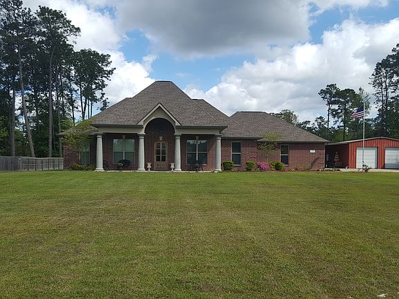 Beautiful Custom Built home, with a Mother-in-law suite which has kitchenette and Full Handicap capable large bathroom. Laundry room is large with granite folding area, cabinet which holds tubs of sorted clothes, broom cabinet, large pantry. The house has an open living layout, with large windows on the front, large windows on the back and provides lots of shaded natural light during the day giving that spacious atmosphere. The large porch and back patio provide a nice sitting and barbecue area for friends to relax. The living room, kitchen, and dining area provide wide open access. All rooms and study come off of this area with no wasted hallways. All bedrooms are on separate corners of the Living area. The walk in pantry and the vast cabinet layout, with mostly lower pull out drawers provide maximum storage of pots and pans. This house is built with storage in mind. Ceilings are a minimum of 10 feet throughout, The living room has 10, 12, and 14 foot tray ceilings with triple stack crown molding throughout. All rooms and closets have 7 inch crown molding. All windows have full wraparound trim and crown molding. All windows and doors have 2" blinds or total darkness draw shades. This house is perfect for shift workers. Lighting is very good, most have dimming 3 and 4 way switches so entering or exiting a room makes turning lights on or off easy. All interior and exterior walls are fully insulated for noise and temperature control. Most interior and all exterior doors are solid core. Windows are double pane, bottom glass tilt in for easy cleaning. Air conditioner in main house is two stage, variable speed, heat pump with zoning. Mother-in-law suite is seperate heat pump. Third garage can be used for motorcycle, golf cart, etc. 30'x40'x12' metal shop with 20'x40' metal awning which serves as parking and storage.