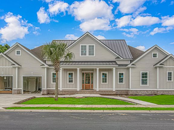 This gorgeous, 5 bedroom 3.5 baths, modern farmhouse-style home sits on the corner of E Isle of Palms and Middleton View Rd in Waterway Palms Plantation. The open concept floor plan allows for a large entertainment space with 12' ceilings. The large windows and doors bring in ample natural light to fill the space with warm lighting throughout the day. The gourmet kitchen features quartzite countertops, black stainless steel gas appliances, a custom pot filler, and a large walk-in pantry with ample storage for the most demanding home chefs. This home is prewired for a professional grade 7.1.2 private home theater with a projector or TV of choice over the garage. It also features prewired 3.1.4 surround sound in the great room, and additional prewire for 2.1 stereo sound for the audiophile who may wish to listen to music in the great room and also in the executive office. With a total of 4400 square feet, you and your family will find the perfect place to relax, read a book, watch the latest movie, or entertain family and friends. There is no wasted space in this custom home and storage space is not forgotten like most new construction homes. Come and take a look today at this beautiful home. It's almost finished and will sell quickly. You don't want to miss out on this unique modern-farmhouse style home in the coveted Waterway Palms Plantation community.. Builder estimates home to be completed in late August.