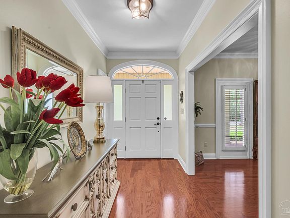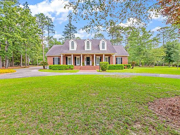 This stately home is nestled in a highly sought-after neighborhood and boasts a picturesque 1.20-acre landscaped lot. Every detail has been meticulously crafted. Inside, you'll find 9' ceilings, hardwood and tile flooring throughout, and elegant Plantation Shutters adorning the windows. The entrance foyer welcomes you and leads to a spacious dining room, perfect for hosting gatherings. The living area features an electric fireplace (convertible to gas) and floor-to-ceiling windows, with a French door opening onto a covered back porch overlooking the lush grounds. The kitchen is a chef's dream, complete with a wet bar, walk-in pantry, island bar, and ample cabinetry, complemented by high-end appliances. A convenient half bath is located near the main living spaces, while the laundry room offers extra storage and easy access from the kitchen. The bedrooms are generously sized with ample closet space, and the master suite is a retreat in itself, boasting three closets, an en suite bath with a walk-in shower, jetted tub, and a spacious vanity. Additionally, the master suite features a private patio, perfect for enjoying morning coffee or stargazing at night. Parking is a breeze with an attached double carport and an enclosed garage. The home is equipped with a whole house generator for added convenience and peace of mind. With too many amenities to list, this property is truly move-in ready and awaits your personal touch. Schedule your tour today to experience the epitome of luxurious living!
