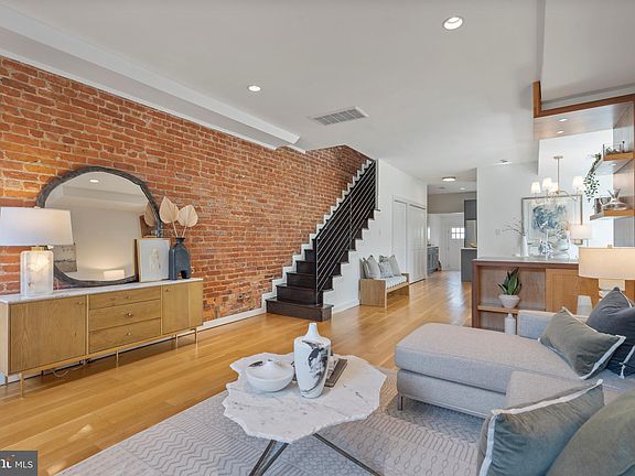Beyond the handsome early 20th-century mansard facade lies a decidedly refreshing, calm, contemporary Capitol Hill home. You can be ensconced in time for nesting season. The indoor and outdoor 'rooms' are designed to heighten your cozy and max out your happiness quotient! A main floor plan with just about everything: sunny, bright Living and Dining Rooms gently separated by a bespoke wood bar with beverage refrigerator and smart storage. Large coat and laundry closets keep things in their place. Inviting new kitchen features GE Monogram + LG appliances. Crisp half bath. Rear mudroom is super flexible and steps out to the pretty flagstone patio and fenced garden. Upstairs, the principal bedroom has an attached full bath with stall shower and expanded ceiling height. Middle bedroom in the upstairs bay can handle a queen-sized bed and more. Flex rear bedroom currently shown as a handy WFH/office space features access to a neat new deck. Full hall bath with tub/shower. Here's the difference: spacious side bays on both floors; 15 (mostly east-facing) Jeld-Wen windows; pretty warm wood floors throughout; and 3 distinct outdoor spaces - all this with much more light and space than the average rowhouse. Just off the H Street corridor near Whole Foods. Stellar Walk Score 94/Bike Score 93.
