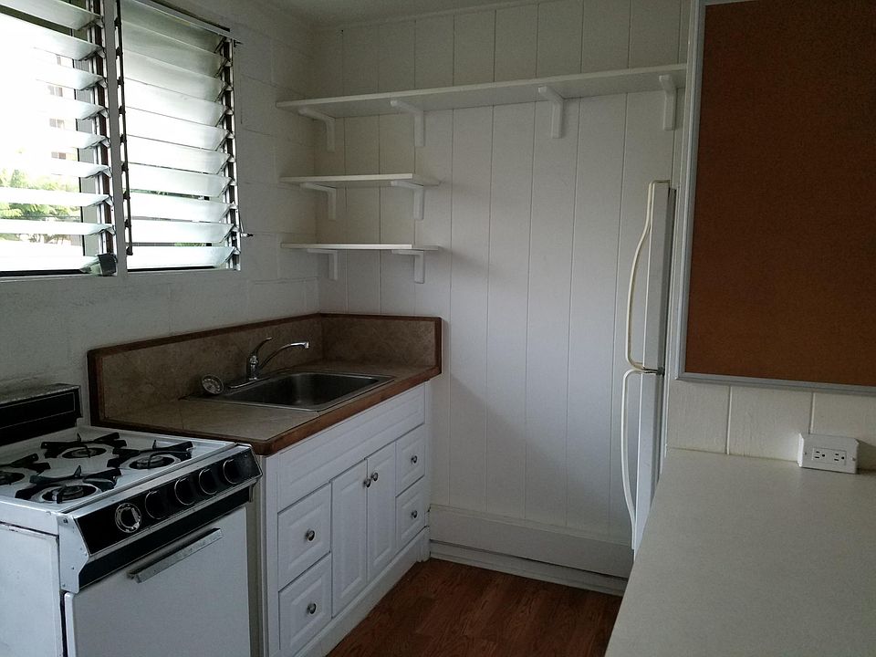 Ground floor unit, conveniently located in the heart of honolulu, within walking distance of popular Kakaako eateries, shops, and bus lines, just up the street from Neil Blaisdell Center, Straub Medical Center, and Honolulu Museum of Art. Comes with gas stove and refrigerator. Parking is $100 additional. Recently renovated with beautiful brand new floors. Brand new floors are all grey. Note, furniture not included.