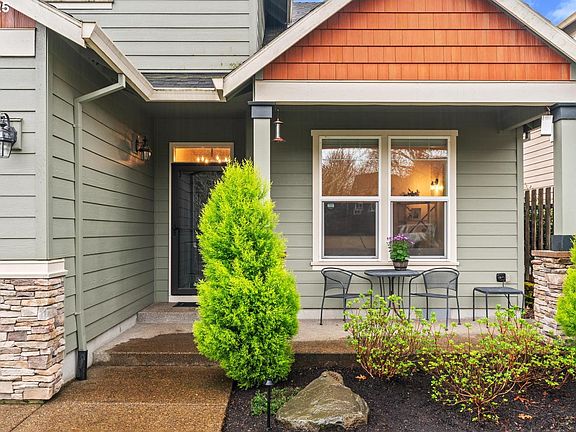 Tucked into a peaceful Forest Grove neighborhood and backing to green space, this charming craftsman-style home offers comfort and style. The front porch welcomes you home, leading into a spacious, open layout that suits any lifestyle. The spacious main level features durable laminate flooring, a flexible formal living room or home office space, and a light-filled great room style family room with a cozy gas fireplace. The kitchen is ideal for cooking and gathering, complete with quartz countertops, a wood-topped island, gas range, stainless steel appliances, and pantry. The dining area opens to a covered patio and fully fenced backyard—perfect for entertaining or relaxing in privacy. Upstairs you'll find generously sized bedrooms, a large laundry room, and a versatile bonus room that can serve as a fourth bedroom, office, or playroom. The vaulted primary suite features a ceiling fan, soaking tub, walk-in shower, dual sinks, and walk-in closet. Additional highlights include an extra-deep garage perfect for storage, a dual-zone furnace, and low quarterly HOA dues. This move-in-ready home blends functionality and charm in a serene setting—just minutes from local parks, schools, and shopping.