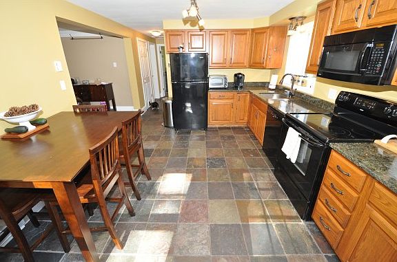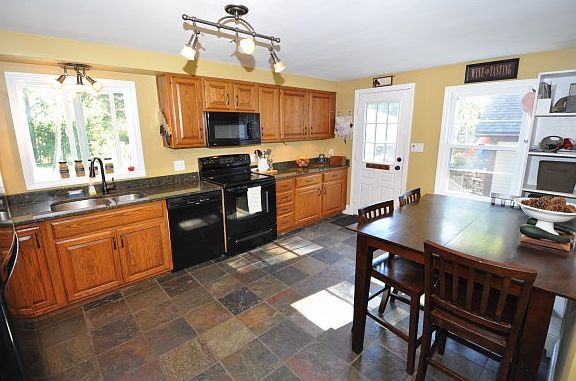 Beautiful 2 bedroom Ranch with 2 car garage on 3 acres!! Located minutes from the golf course this home has a granite kitchen with slate floors, crown molding, wood stove and a half bath in lower level almost completed. A newer Barn with tack room will allow you to stop boarding that horse !Or use for small business ?