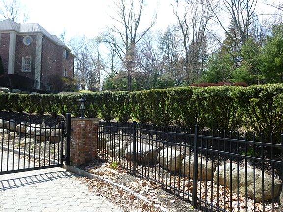 Approximately 5200 sq feet plus 800+ sq feet finished basement with Gym, Media room and Storage room 5 large bedrooms (Large Master Bedroom includes walk-in closet and sitting room) 5 Full bathrooms (Large Master Bedroom bathroom) 1 Powder room 3 Fireplaces (one in Master Bedroom, Large Living Room and Small Living Room) Pavered driveway with Belgian blocks Completely landscaped with select trees, shrubs and flowering plants Landscape lighting Fence around property Gate at entrance with pillars Poured Concrete foundation Exterior 3 sides brick, 1 side chem plank 6 zones HWBB heat 3 zone CAC Custom moldings throughout Central Vacuum Sprinkler system with drip irrigation