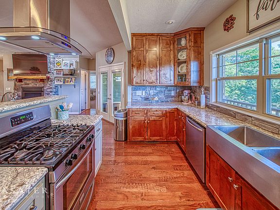 Looking for a farmette on paved road close to town? This may be the property for you. Wonderful views and seclusion, yet less than 5 minutes from town. 2015 construction, 4 bedroom, 3 bath home with an open floorplan on 6.53 acres. There are so many wonderful features some of which include lovely hardwood floors in the kitchen, dining, and great room, a lovely stone gas fireplace, a master suite to die for with the a large soaker tub and a walk in shower, and a beautiful kitchen with custom cabinetry. The 1518 sq. ft finished walkout basement is just as lovely at the upper living area with it's beautiful stained concrete floors, a large family room, fourth bedroom, full bath, a safe room and a workshop area with third garage. See Supplement for more information.