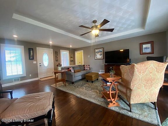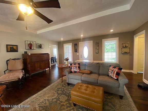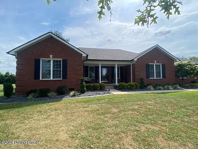 Located in the serene country atmosphere of Woodlawn will find this pristine three bedroom two bath brick ranch style home with attached & detached garages. Excellent curb appeal greets with the covered front porch & custom black screens. Enter into the spacious & comfortable Living Room with engineered hardwood floors. Chefs delight Kitchen offers an abundance of lovely cabinetry & comes equipped with a full complement of stainless appliances & granite countertops. Vaulted Dining Room great for entertaining. Large 15x22 home office/studio/Den area is a wonderful added living space. Separate Laundry room with vinyl plank flooring . Beautiful plantation shutters add an elegant feel. Highly desirable split floor plan allows for the utmost in privacy. Primary Bedroom suite with decorative trey ceiling & lovely wood flooring. Escape to the luxury of the Primary Bathroom featuring decorative tiled accent wall & backsplash, double sink, soaker garden tub, walk in shower. Two additional bedrooms with wood floors completes the interior of the home. Additional updates include new roof, gutters & windows. Kick back & relax on the covered trek deck offering both a relaxing jacuzzi tub & sparkling above ground pool. Beautifully landscaped & black chain link partially fenced yard. This one has it all! Call today for your personal tour.