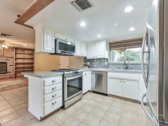 Toto, it sure doesn't feel like were in the Desert anymore.. This 3 bedroom, 2 bath home in popular NW location is everything you have been looking for. Large living room with picturesque window overlooking the green front yard. Updated kitchen with quartz counter tops, subway tile and stainless appliances. Dining room with tons of storage. All bedrooms have been updated with fresh just installed carpet. Cozy family room with brick fireplace and built ins. Both bathrooms have been updated with new counters, sinks and fixtures. The backyard is a very private oasis.. Beautiful pond with so many green plants and trees. Covered patio, BBQ , pergola and flagstone. Don't miss out!