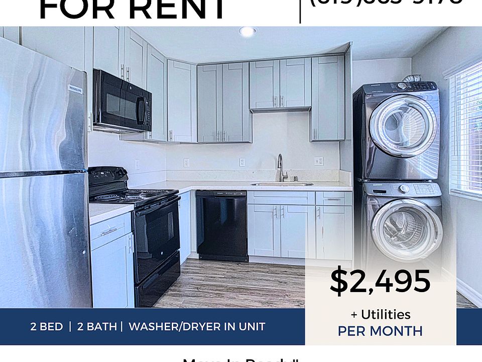 FOR RENT IN EL CAJON 2 Bed , 2 Bath Washer and Dryer Included Rent $2,495 + utilities Close to schools and shops Section 8: YES! AVAILABLE FOR RENT NOW 1024 Leslie Rd Unit D El Cajon, CA 92020