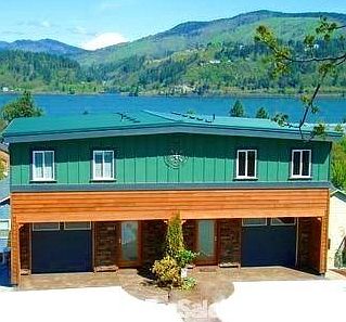 Showingsby appointment only, to prequalified buyers. Home takeover not available until September. 3BR, 2.5 BA, 2000 sq. ft. Top floor Master Suite. Gourmet kitchen . Unobstructed270 degree views of Mt Adams, Columbia River, Hood River Bridge fromevery room. Downtown,walk to everything. High end, quiet neighborhood. Minisplit remote controlled AC. In floor zonal radiant heat, even undershowers and tub. Topfloor: Master Suite , superb views, large walk-in closet, desk nook. Dualhead walk-in heated tile shower, withbench.Pedestal sinks, thick stone counter. Quiet, private. Remote AC :control temperature from anywhere in room Midfloor, open plan :Beamed vaulted ceiling . Hickory arch top kitchen cabinets, lazysusans, pullout shelves, thick black with gold fleck counters.Jennair dual fuel, dual oven 5 burner range, Bosch dishwasher, OTRmicrowave, side x side fridge. Dining, living room , 1/2 bath .Private deck with 270 degree view . Remote AC : control temperaturefrom anywhere in room Bottomfloor : 2BR , full bath with shower/tub, laundry sink, washer and dryer ,linen closet, locked storage under stairs. Private deck. Garage: Extralong garage with gear racks, level driveway with parking for 4 carsor boat or RV Yard: Automatic hard wired sprinkler system Exterior : Metal roof - no maintenenace ! Newly painted cedar walls. Watchwindsurfing, kitesailing, and sailboat races from your deck , or thelocal eagle , ospreys, quail, and Canada geese on the sanctuaryisland below. Wellestablished Vacation Rental business for sale separately.Icould continue managing it for a rate below other managementbusinesses in town. Setaside the dates you want, and make money the rest of the time.MOREINFO AT : www.vrbo.com/163106 Furnishingsfor sale separately.Move into a fully furnished home ! Onlythe right side is for sale, not both sides of the townhome.Additional property info: http://www.forsalebyowner.com/listing/3-bed-Condo-Townhome-for-sale-by-owner-1024-Lincoln-St-97031/23975452?provider_id=28079