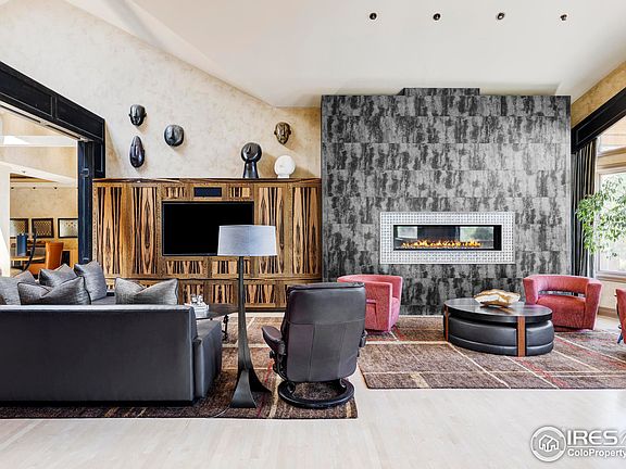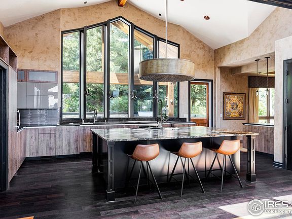 Your luxury mountain retreat awaits in this spectacular three-bedroom, two office, four-bathroom residence featuring designer interiors, jaw-dropping views, elevator access, and more than 3 acres of park-like outdoor space in Boulder, Colorado's coveted Pine Brook Hills.This luxurious 6,167-square-foot home impresses with upscale bespoke finishes, including inlaid hardwood and stone tile floors, soaring beamed ceilings with skylights, designer wallcoverings and custom built-ins. Your dream entertaining space begins with a massive open great room topped by bold beams, ebony and wenge wood cabinetry and a fireplace covered in Ann Sacks tile. The wet bar keeps refreshments close at hand with abundant cabinetry and granite counters. Chefs will love the sleek updated kitchen, where Wedgewood cabinetry boasts leathered granite countertops and Nubio glass tile backsplashes. The fleet of appliances by Miele, Sub-Zero and Wolf make cooking and cleaning effortless. Enjoy casual meals at the massive single-slab granite island, or host lavish gatherings in the adjacent formal dining area. A beautiful family room with a stately fireplace completes the expansive living spaces. This fine home's seamless outdoor lifestyle begins off the living area with a treetop east-facing deck, perfect for morning coffee or after-dinner drinks. Enjoy the outdoor kitchen featuring a Lynx grill, Traeger smoker and warming drawer. Flat lawn areas are ideal for pets and play, and a separate covered deck beckons with heaters, a hot tub and a fire pit.The main-floor owner's suite features a private deck, fireplace and two roomy walk-in closets. The elevator delivers you to the lower level, where you'll find another luxurious bedroom suite and home gym that both open to a large patio area, home theater, another full bathroom, laundry room, temperature-controlled wine cellar, and abundant storage. While it feels worlds away, this exquisite home is just minutes to North Boulder and Pearl St amenities.