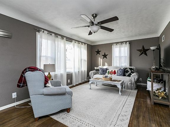 Park view and more! Spacious Cape Cod 1.75 story home with newer windows, fully fenced yard and stylish kitchen. Great location across from a neighborhood park. Main floor includes living room, formal dining room, eat-in kitchen, full bathroom and two bedrooms PLUS ample overflow storage closets. Upper level includes super cute half bathroom plus two generously sized bedrooms. Lower level includes laundry room, rec room area and theatre room with gobs of shelving. Handy one-car attached garage plus carport. Easy access to shopping, schools and 380 freeway. Neighborhood loaded with sidewalks for walking with Fido or the kids. Check this one out today!