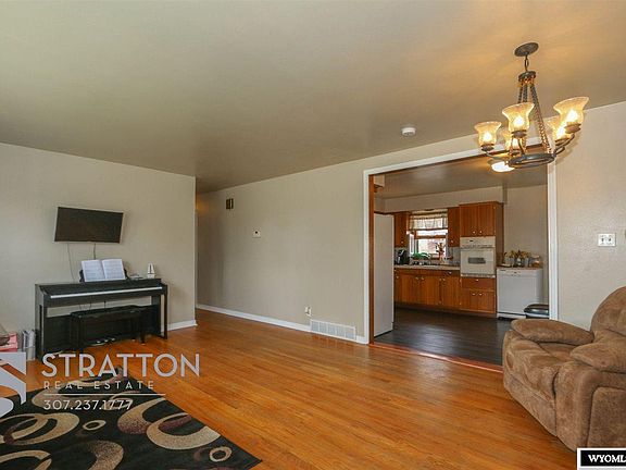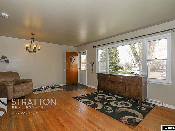 This East Casper ranch style home has all your family has been looking for! 4 Bedrooms, 2.5 beautifully updated bathrooms, hardwood floors, granite tile flooring in the basement with built in surround sound and recessed lighting, an additional room for an office, and great storage. Outside offers stunning tulips growing in the front yard, a huge backyard with play set and oversized shed with vinyl windows, carpet, insulation, and drywall, and an automatic sprinkler system. Don't miss out!