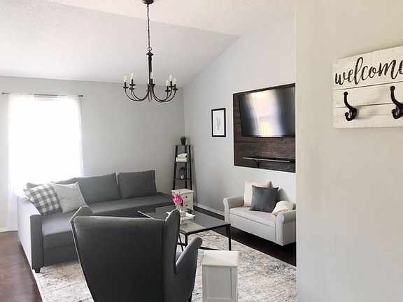 This 3 bedroom, 2 bath home is a must see! So much new to see like a completely updated guest bath with new tub, tile surround, vanity, mirror, lights and more. The interior has just been freshened with new paint throughout, new carpet and tile laid in the kitchen. Other features include engineered hardwood floors, tile floors, vaulted ceilings, updated fixtures, plant ledges, fully equipped kitchen, master bed room with full bath and walk-in closet, large deck plus a fenced yard! Renter pays for utilities, landscaping.