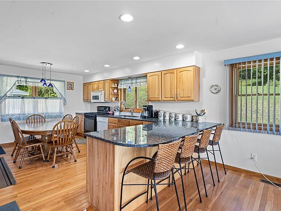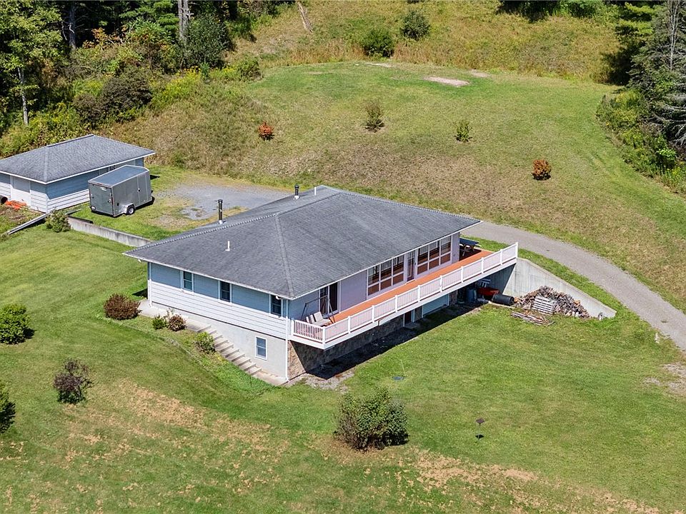 Gorgeous, with meticulous attention to detail, custom-built home nestled into a picturesque hill on 5.83 sprawling acres with breathtaking views of the valley and hills. Property offers unparalleled privacy and a seamless blend of natural beauty and modern comfort and amenities. Built in 2002, with exquisite craftsmanship and quality designs featuring composite vinyl cedar shake and veneer stone siding, thick insulation, hardwood floors, central AC, granite countertops, and walk in pantry. Open-living concept with a wall of windows maximizes natural light and accentuates warmth and brightness as the gateway to the massive front full-length deck. Four bedrooms with a spacious master and huge walk-in closet. 2.5 bathrooms include an oversized master with whirlpool tub offering sublime relaxation. Attached garage and detached garage/workshop offers an abundance of storage space and practicality!