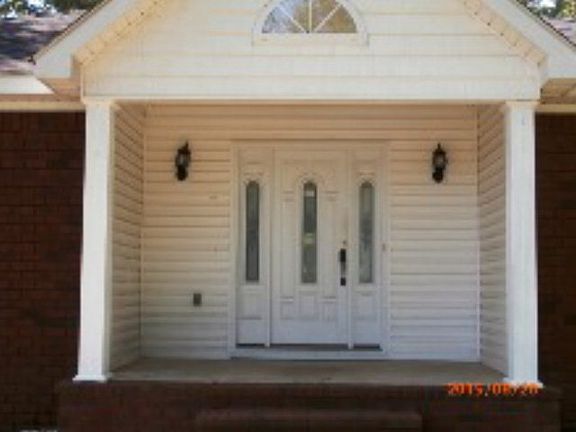 Lovely all brick home with deep 216' cleared lot with some trees, no neighbors across road, split bedroom plan, fireplace, large kitchen, breakfast room with French doors to covered patio. Utility room off kitchen with exterior door, good size master and bedroom sizes. Alabama Right of Redemption applies.