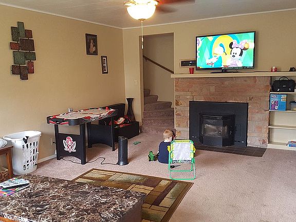 - Fireplace features: wood stove