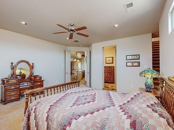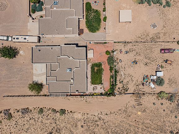 This exquisite property is an absolute must-see! Nestled on a generous 1/2 acre, this custom-built home boasts an array of impressive features that are sure to captivate you.Step inside and be greeted by a stunning interior that offers 4 bedrooms and 2.5 bathrooms, providing ample space for comfortable living. The main floor hosts a spacious kitchen and a flex room, offering versatility for your needs. The flex room can be tailored to suit your preferences, whether you envision it as a cozy loft, a home office, or a recreational space. As you step out onto the upper porch off the flex room, prepare to be enchanted by the breathtaking, unobstructed views of the majestic Sandia Mountains.