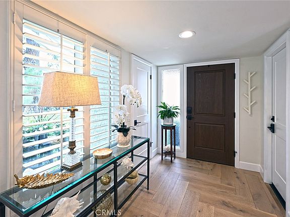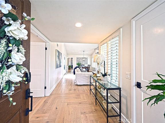 In the highly sought-after gated Broadmoor community, live the luxurious life in this stunning single-level, highly upgraded 1024 Pacifica Dr. home! This move-in ready masterpiece features 1,653 living square feet with 3 bedrooms & 3 bathrooms filled with contemporary upgrades throughout including recessed lighting, plantation shutters & breathtaking European white oak wood floors. Walk under the overhead trellis & step through the door in to a bright & airy entry and living room with a cathedral ceiling, fireplace, plantation shutters, recessed lighting, wood beam & chandelier. Entertain in the dining room adorned with a built-in bar boasting custom cabinets, a quartz countertop, marble tile & a beverage refrigerator. The remodeled kitchen has a center island, quartz countertops, stainless steel appliances, glass tile backsplash & recessed lighting. Just off the kitchen movie nights are a breeze in the family room equipped with an entertainment center. In this elegant 3 bedroom home the spacious primary bedroom has a wood tongue-&-groove accent wall, chandelier, 2 closets, an atrium view & a spa-like bathroom. Bedroom 2 offers a cozy retreat overlooking the atrium. Bedroom 3 is a large bedroom with a beautiful private full bathroom. All 3 of the bathrooms are gorgeously upgraded with modern finishes. The spa-like primary bathroom boasts a barn door, porcelain tile floor, dual vessel sinks, a quartz countertop, custom cabinetry, a dedicated vanity area & a stunning rain shower with glass mosaic tile. The 2nd bathroom features large tile flooring, an exquisite marble walk-in rain shower and a custom vanity with a quartz countertop. The third beautiful bathroom features a tub/shower combo with designer glass tile, custom vanity & quartz countertop. Find serenity in the atrium with 2 wall fountains, wood-look tile flooring, overhead retractable shade screens & a vibrant greenery wall panel or enjoy the back patio with its flower garden, slate tile flooring & greenbelt view. The brightly-lit, attached 2-car garage has epoxy flooring, built in storage cabinets & a 2-car driveway. Peace of mind comes with this meticulously upgraded home. Since 2019 the property has undergone a comprehensive remodel including new PEX plumbing with a whole-house water softener, new HVAC system, new windows & doors, a new energy efficient roof, new recessed LED lighting, new electrical outlets & a 220v electric vehicle charging outlet. Also enjoy the benefits of a HOA pool & spa.