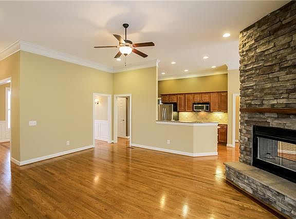 All Brick one level plan with 4 bd. on main plus bonus room, 3 full baths. Full stone fireplace, granite ctops, main level hwd, Angled frpl, tiled baths, quality all brick cons. Wired for surround sound.9 ft and 11 ft ceilings.