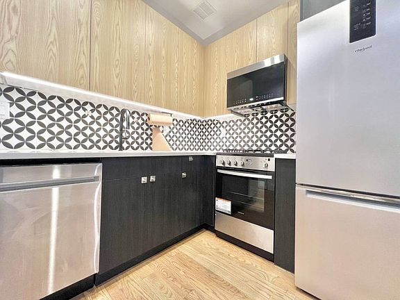 Gorgeous 1 bedroom, 1 bathroom apartment available in the heart of Morris Park, Bronx. This completely updated unit features brand new stainless steel appliances, modern cabinetry with a designer backsplash, exposed brick accents, recessed lighting, and plank hardwood flooring throughout. The open living area is filled with natural light from large windows, and the stylish bathroom is finished with sleek custom tile and contemporary fixtures. The home also includes a private in-unit washer and dryer, thoughtfully designed finishes, and efficient heating/cooling systems. Conveniently located near shops, restaurants, and public transportation, this apartment blends modern comfort with classic character. Pets are welcome, and applicants must show income of at least two times the monthly rent.