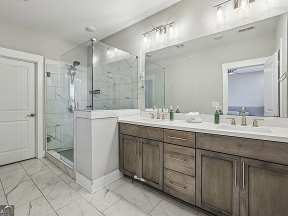 Priced Below Appraised Value! Gorgeous Brick End Unit Townhome nestled along the vibrant Westside BeltLine in the sought-after Ten29 West community one of the few neighborhoods with Direct BeltLine Access! With the BeltLine at your doorstep and Mercedes-Benz Stadium just minutes away, this home perfectly blends modern luxury with unbeatable convenience. A Covered Front Porch welcomes you inside, where Abundant Windows, 10' Ceilings, and Hardwood Floors throughout create a bright, open layout. The Entry Level Bedroom with Ensuite Bathroom offers incredible flexibility ideal for a Home Office, Guest Suite, or both thanks to the Murphy Bed setup. Upstairs, discover an Open-Concept Living Level designed for entertaining and everyday comfort. The Living Room features a Custom Accent Wall, while the Chef's Kitchen impresses with a Massive Quartz Waterfall Island, Beautiful Stained Cabinetry, Stainless Steel Appliances, and a Timeless White Subway Tile Backsplash. The Dining Room is full of natural light and opens through French Doors to a Private Balcony, perfect for morning coffee or al fresco dining. A Chic Powder Room on this level adds convenience, and Custom Built-In Cabinetry and Serving Counter provide a perfect setup for hosting. The Primary Suite is a luxurious retreat with a Double Stone Vanity, Glass-Enclosed Shower, and a Large Walk-In Closet. A Secondary Ensuite Bedroom completes the upper level, ideal for family or guests. Head up to the Private Rooftop Deck a true showstopper! Enjoy City Views, a Partially Covered Lounge Area perfect for game days, Artificial Turf for Play, and plenty of space for a Dining Set or Outdoor Kitchen. An additional highlight includes a Two-Car Garage with Electric Vehicle Charger Outlet. Located just minutes from Downtown Atlanta, Georgia Tech, Mercedes-Benz Stadium, and the Westside Park, with easy access to Echo Street West, The Works, Interlock, and countless Shopping, Dining, and Entertainment destinations. Enjoy proximity to some of the Westside Districts best from Marcel and Little Sparrow to Bar Blanc, Forza Storico, Jeni's, Sid Mashburn, and Perrine's Wine Shop. Experience Modern BeltLine Living at its best Welcome to Ten29 West!