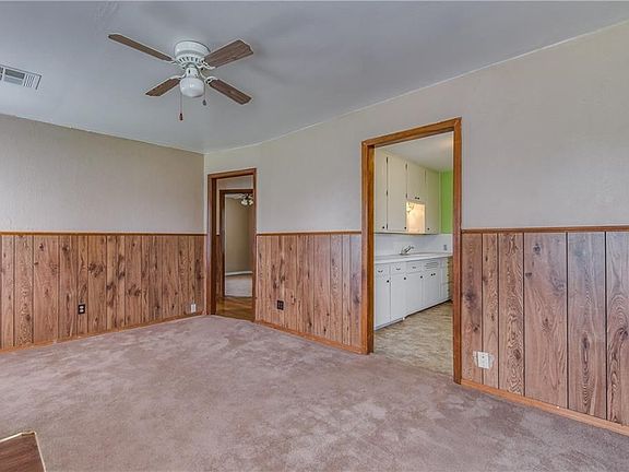 GREAT FIRST HOME OR INVESTMENT PROPERTY. This 2 bedroom home built in the 50's has been updated with central heat and air, metal siding, plumbing under the house and the electrical panel. Also, a laundry room was added onto the back of the home. The laundry room square footage is not reflected on county tax records. It has a detached garage and a large backyard with Pecan trees. The wide hallway has extra storage. It is located close to shopping, schools and downtown El Reno area.