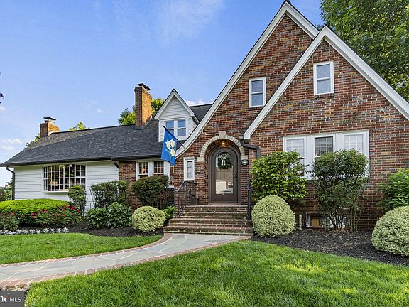 Simply stunning, classic all-brick Tudor architecture at its finest sits perched on a wide, nearly quarter of an acre corner lot measuring 10,020sf! Meticulously landscaped, including landscape lighting, in-ground sprinkler system and a meandering flagstone walkway that leads to the wide brick front entryway with arched wooden door. Welcoming front foyer is complete with a coat closet and looks into the large formal living room. Living room boasts a gas fireplace and mantle, elegant moldings and large triple window overlooking the front yard. Adjacent to the living room is a great room/ den with another wood burning fireplace, built-in shelving, dual bay windows and dual, double French doors leading out to the side yard. The large dining room features chair rail molding and wainscoting, two sets of triple windows for tons of natural light and leads into the chef’s kitchen. Eat-in kitchen boasts beautiful cherry cabinetry complete with slide-out drawers, silestone/quartz countertops, under cabinet task lighting, stainless steel appliances including double oven and a five-burner gas cooktop. Breakfast nook has additional cabinetry storage and overlooks the side yard sitting area and backyard patio. Generously proportioned main level bedroom doubles as a large home office and is adjacent to the main level full bathroom, perfect for a guest suite or main level living with age-in-place functionality. Upper level boasts three generously proportioned bedrooms, each complete with a ceiling fan, abundant windows, closet storage and character filled roof lines customary of Tudor architecture. Renovated, spa-inspired hall bathroom is complete with glass enclosed shower, gorgeous ceramic tile surround and built-in storage. Fantastic lower level features an alternate fifth bedroom and third full bathroom, wine storage room and utility/ storage, laundry room and access to the attached garage with custom storage system. Separate storage room off of the driveway is perfect as a “potting shed,” garden storage, bike/ tool room/ workshop. Side yard sitting area amongst the bushes and trees is a cozy place to enjoy a glass of wine and chats with neighbors. Backyard patio and garden are absolutely picturesque; the serene, tranquil hardscaped and landscaped backyard oasis is ideal for entertaining and is adjacent to quiet Oakcrest Park. Additional features of this meticulously maintained home include driveway parking for multiple cars, boiler for radiant heat throughout the home, a new roof, new A/C and so much more! Supreme location within the most convenient neighborhood throughout the entire D.M.V. – Zero stoplights to Washington D.C., close to Metro, schools, shopping, dining, grocery stores including Whole Foods. Easy access to The Pentagon, Amazon’s new National Landing HQ2 Headquarters, Virginia Tech Innovation Campus and so, so much more!