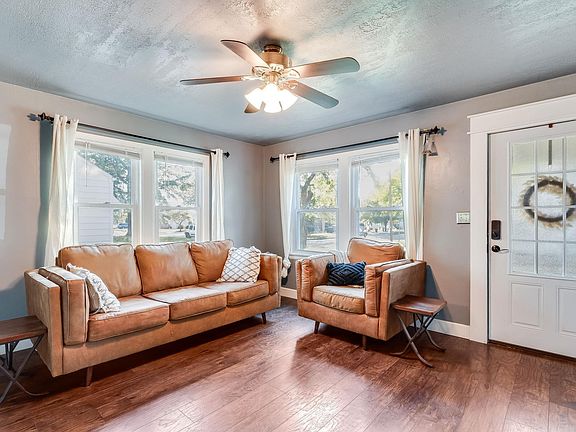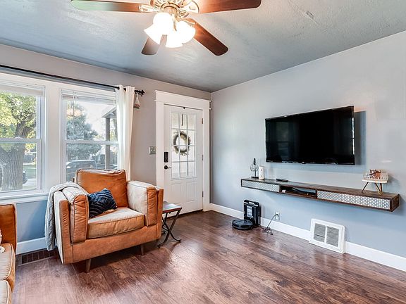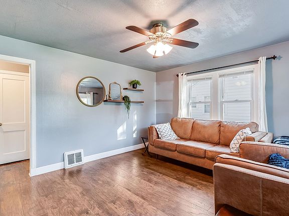 Welcome home to this beautifully maintained 3-bedroom, 2-bath ranch-style home filled with character. Step inside to find a spacious living room featuring wood-plank flooring and an abundance of windows that bring the outdoors in. The kitchen is sure to impress with its generous countertop space, stylish tile backsplash, exposed brick accent wall, and room for a dining table. All kitchen appliances stay! The oversized master bedroom offers dual closets for plenty of storage. The main bathroom features a large vanity with extensive counter space, a custom tile shower surround, and elegant tile flooring. Two additional bedrooms complete the main floor. The finished basement is the perfect place to relax or entertain, featuring a wet bar, a second full bathroom, and ample storage. Head outdoors to your private backyard retreat! The fully fenced yard includes a large, partially covered patio that flows into a shaded deck surrounded by mature trees. Enjoy evenings by the fire pit, let pets play in the dedicated dog run, and store all your tools in the convenient shed. This home is low maintenance with newer vinyl windows and 5+ years left on the transferrable home warranty. This home has it all - charm, space, and the perfect setting for entertaining inside and out!