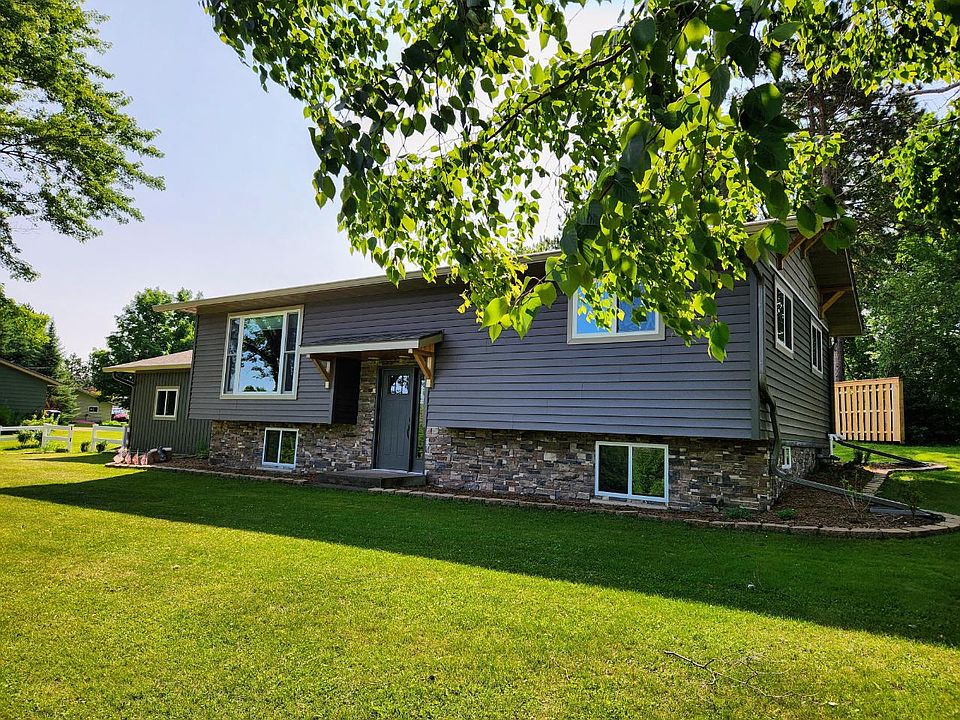 Here, all the work has been done and ready for you to enjoy! Completely updated 3 bed 1.5 bath home situated on a quiet city lot with spectacular views of the Flambeau River. This beautiful home offers prime location near the public golf course and next to Hines Memorial Park which offers a paved walking trail, public fishing pier, and boat launch. Inside you will find a modern galley style kitchen with alder cabinets, quartz countertops, tile backsplash, and dining area. The spacious living room has engineered hardwood floors with a brand new large picture window offering tremendous views. There are 2 main floor bedrooms with ample closet space and a full bath. Downstairs is a 3rd bedroom, half bath, laundry, and family room area with entry from the 2 car attached garage. Large newly blacktopped driveway offers plenty of parking including an RV parking pad and plug next to the garage.