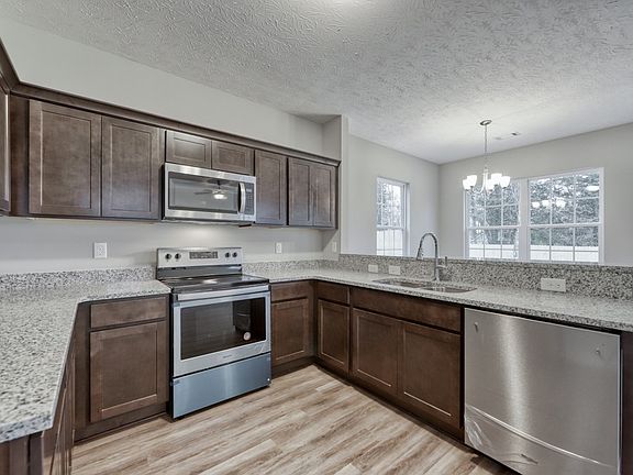 Do not miss this new all brick home in the quiet neighborhood of Townview. Beautiful community with sidewalks & large home sites w/fully sodded backyards. Open living room to kitchen w/gorgeous cabinetry & granite countertop with an eat-in kitchen area. 1st level half bath, recessed lighting throughout, storage under stairway & roomy closets. Bedrooms up w/Owners ensuite. Private oversized fully fenced backyard w/patio & covered front porch, plus a 2 car side entry garage w/spacious driveway.