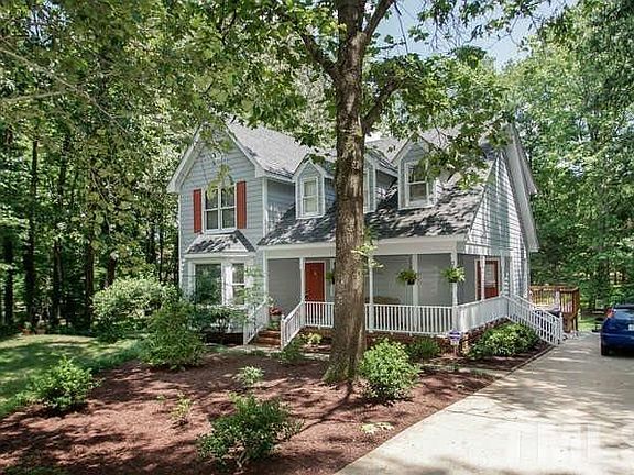 Charming home on over 1.2 acres of private wooded property! Relax on the wrap around porch and enjoy the nature around you. Spacious living room with gorgeous brick fire place. Formal dining and foyer areas. Large kitchen with ample storage and counter space, bar seating, breakfast nook and tons of natural light. Master has on suite bath with his and hers closets and dual vanities. Backyard is open and well maintained and perfect for entertaining with large deck, shed, and huge custom fire pit space.