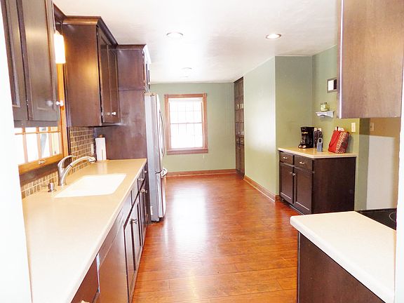 Situated on a quarter-acre, corner lot with large trees, fenced in backyard with fire pit, this 4 bedroom, two full bath home has original hardwood floors in the bedrooms and new flooring in the living room. Central air, electric fireplace, and garage with attached garden shed.