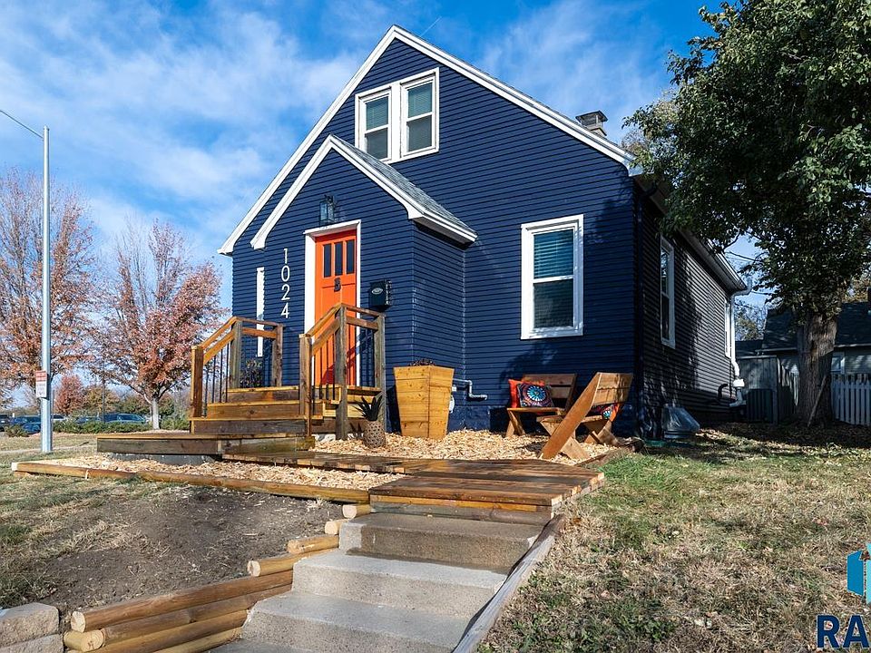 Come home to this charming 1.5 story home conveniently located across the street from the Sanford campus in central Sioux Falls! Unique characteristics greet you inside including curved archways into a formal dining room and the kitchen. Updated kitchen sparkles with new vinyl plank flooring, stainless appliances and Modastone countertops. The primary bedroom and full bath are located on the main floor with built-in storage in the hallway. The spacious upper level could be utilized as a bedroom, home office or bonus room. Equity is waiting for you in the basement with egress window. Recently-landscaped space in the front yard provides space for outdoor seating. Fenced backyard, entertaining space and additional parking pad complete this backyard ready for entertaining.