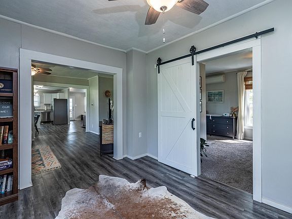 Enjoy this Bright, Adorably Refurbished Home with an open floor plan living layout. Main floor living, zero step entry system, two living room spaces. Main floor bedroom enlarged to also include a private Primary bath. Separate bath on the main level offers massage shower head upgrades and more specialty features. Custom kitchen with high end appliances, plenty of counter space for entertaining or baking, and tons of storage, all open to the living/dining areas. Oversized laundry center at the back door perfect for organizing your daily tasks or an additional office space. Private backyard, raised deck system overlooking a manicured green space. Two car garage with heightened garage doors and plenty of electrical for workshop space, additional parking onsite. Wrap around porch is extra wide for all sorts of furnishing configurations. Super-sized corner lot space larger than most city lots. So much opportunity.