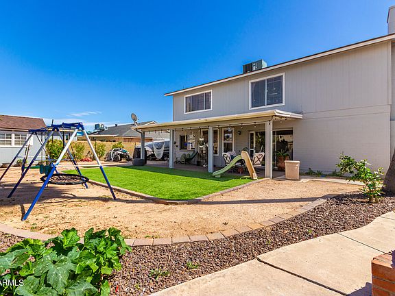 Beautiful home with 4 spacious bedrooms, 2.5 bath on an oversized lot! NO HOA! The primary suite includes a large bedroom, bathroom w/ dual sinks and closets. The backyard has a large covered patio, RV gate, turf, planter beds, and storage shed and insulated shed/workshop with a/c. Convenient location walking distance to Dobson High school, just minutes to great shopping, restaurants and the 101/US60 highways.