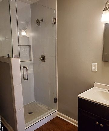 Open floor planPlenty of storage spaceIsland kitchenLarge bedroomWalk in glass shower