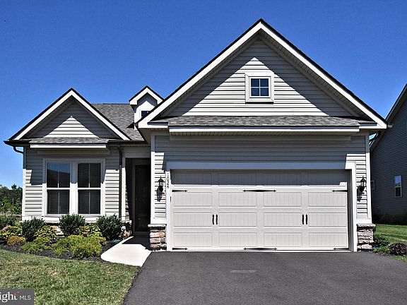 This impeccacable ranch-style residence, located in a premier 55+ community, is just two years young and thoughtfully designed for comfort and style. The open floor plan features hardwood floors in the kitchen, breakfast area, hallway, and family room. The modern kitchen is enhanced by a stunning backsplash, Quartz countertops, and gas cooking , an island with a sink and a sophisticated neutral design. The luxurious primary suite features a double-sink vanity with granite countertops, offering both elegance and functionality. Large primary bedroom with abundance of closet space. A two-car garage with a 4-foot extension and electric door openers provide extra storage and convenience. Situated on a premium lot backing to open space, the home offers a peaceful patio in the backyard for relaxing or entertaining. Enjoy resort-style living with a community clubhouse featuring a pool, hot tub, game room, exercise room, large kitchen, pickleball, and tennis courts—perfect for an active and social lifestyle.