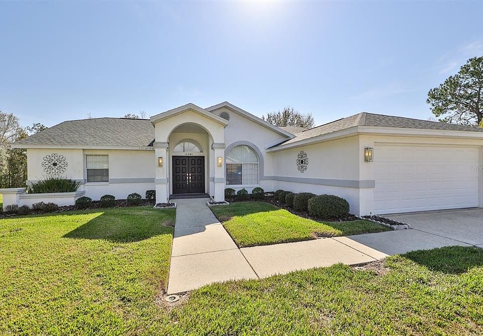 Meticulously, well-kept POOL home on a huge private lot. Three bedrooms, two bathrooms with an open floor plan, and a gorgeous pool. All the living and wet areas are tiled throughout with brand-new tile. There is a separate dining area for entertaining or use the spacious eat-in area next to the kitchen for everyday meals. The kitchen has brand-new quartz counters with a breakfast bar that overlooks the family room. In the family room, you will find a real wood-burning fire. (Don’t laugh it was 47 degrees on Christmas Day and that fire was very welcoming). There is so much light in this home with three sets of sliding doors that lead to your outdoor oasis. There is plenty of space for hosting guests with brand new pavers and a sparkling pool that was recently resurfaced. The large lot gives you plenty of green space beyond the pool area including a paved area with a pergola. Back inside the home, you will find your owner’s suite also with sliding doors to the pool area. The master has a walk-in closet and a generous size master bathroom with a walk-in shower and a garden tub. This home features a split floor plan with two large guest bedrooms on the other side of the home. They share a full-sized bathroom which also has a door to the pool area. The roof was replaced in 2021 with a 15-year warranty. Both the A/C and the pool pump are new. The lucky buyer of this home will own a home already repaired and remediated due to sinkhole activity in 2012. There is nothing left to do but move in and make it your own! Furniture is negotiable with the sale of the house.