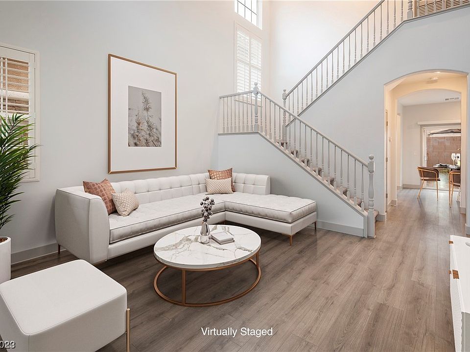 This beautifully renovated 4 bedroom home, sits in one of Las Vegas's favored master planned communities of Mountains Edge. Live a lifestyle close to nature, shopping and major FWY's. Mountains Edge boasts many parks and community facilities that are great for family's and individuals alike. This home has been fully renovated with matching quartz countertops throughout, all new stainless steel appliances, all new flooring, paint and more! No need to lift a finger to prepare for your move in, as this home is spotless and ready for making memories. One bedroom is located downstairs and boasts the same flooring as the main living level. Perfect for a home office or den!