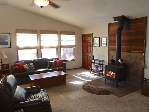 Sierra Meadows Beauty...this house really shows pride of ownership...it has been lovingly maintained by the owner for 20 years. There's an open kitchen, dining and living room with vaulted ceilings and a terrific fire view wood stove for mountain comfort in the wintertime! It's a shame we can't see it in the summer time, the yard is beautifully maintained front to back. The rear yard has loads of thimble berries. The huge front porch is a big summertime plus for outdoor enjoyment. HOA has pool and tennis.