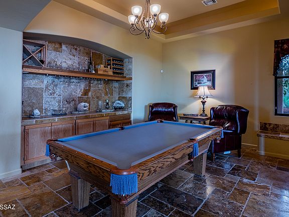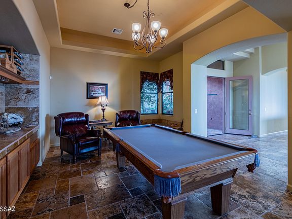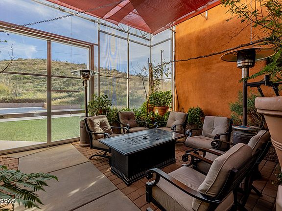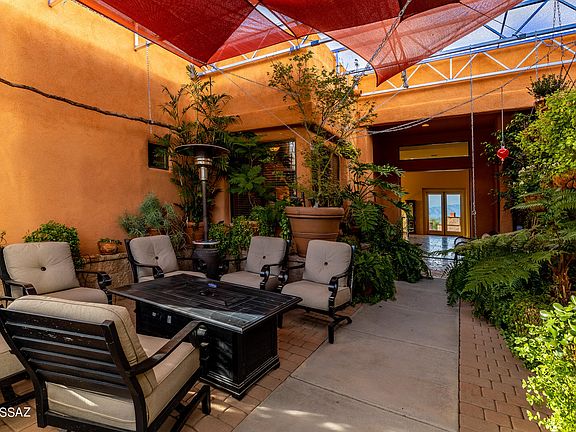 Secluded & nestled in the Santa Rita Mountains with panoramic views sits this beautiful Ducati Custom built home on 4.15 sprawling acres of lush natural desert landscape. The long extended driveway leads to a screened-in courtyard that opens to a well thought-out & spacious floor plan. Natural stone flooring on a French layout pattern, hand carved mesquite mantle over the warming fireplace, formal dining room with built-in buffet cabinets & wide open kitchen are just a few of the special features. Master suite is large with dual vanities, closets & a private screened-in porch. Popular media room with its own personal patio provides a great space for all your entertaining needs. Retreat outdoors to the relaxing hot tub, colorful sunsets & a cozy fireplace for those winter nights.