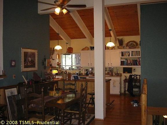 Very nice unit with open floor plan, hardwood floors upstairs and lots of upgrades. Gas hot water heater, newer gas chef's range, butcher block counter, pantry, and open beam ceiling throughout upper level. Great floor plan with three bedrooms downstairs and two full baths, wet bar and half bath upstairs. HOA dues include snow removal of driveway and road (no berms!), exterior maintenance and building insurance. Large two car garage with workbench.