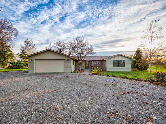 MLS# 289099 Enjoy peaceful country living in Sunnyside on 4.28 acres of stunning view property. This property includes a fully insulated 1,200 sq. ft. three-bay shop with propane heat, an additional storage shed, open RV parking, irrigated pasture, and partial fencing—ideal for animals, hobbies, or future expansion. The beautifully updated home features a sunken living area with hardwood floors and large windows that fill the space with natural light. Overlooking the living room is a lovely formal dining area that could also function as a den or office. The fully renovated kitchen is a showstopper, offering butcher block countertops, tiled backsplash, apron sink, upgraded appliances, custom cabinetry and shelving, a large pantry, and a convenient breakfast bar. A cozy dining nook just off the kitchen provides exterior access for seamless indoor-outdoor living. The spacious primary bedroom includes a custom closet and an updated ensuite with a dual-sink vanity, tiled shower, and soaking tub. Two additional bedrooms offer excellent storage, and the attached 2-car garage adds everyday convenience. Outside, you’ll find a generous patio, mature landscaping, and ample room to bring your horses, build a barn, or create the country setup you’ve always envisioned. Enjoy sweeping views of neighboring vineyards and mountains—an exceptional setting for true rural living.