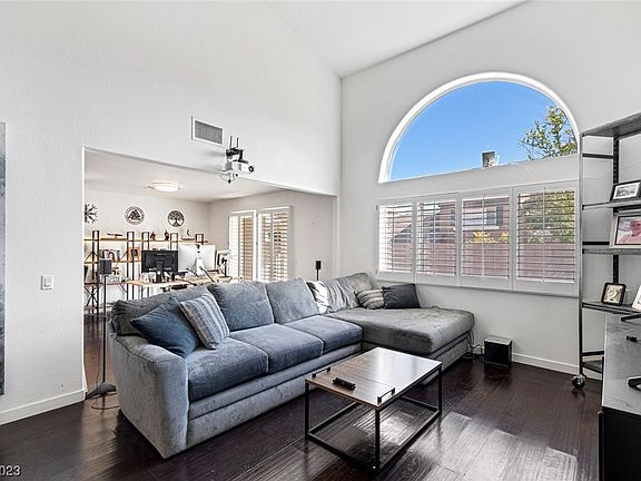 Gorgeous 3 bedroom and 2.5 bath townhouse in a gated community in Summerlin, a short walk from John W. Bonner Elem School and a 5 min drive to Downtown Summerlin. Enjoy the bright and airy living room with high ceilings, dark laminate floor, and plantation shutters throughout. Open concept kitchen and family room. Kitchen has a breakfast nook, granite countertops, stainless steel appliances and modern cabinets. Spacious primary bedroom upstairs with en suite bathroom. Also upstairs--two additional bedrooms and another full bathroom. Unit has direct access to private 2-car garage. HOA amenities include pool, spa, playground, fitness room and clubhouse.