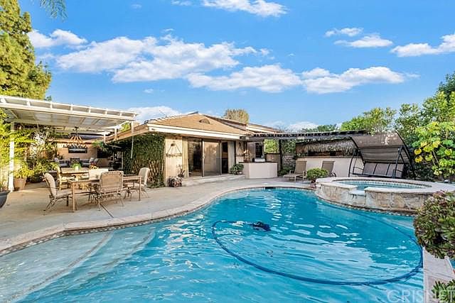 Ultimate comfort, luxury, and style have been elevated to the highest in the great Scottish Teracce neighborhood. This charming Northridge house has a beautiful gate on a large private lot at the end of the cul de sac; from outside, the home is nestled behind the trees and greens, which gives you great privacy and beautiful curb appeal before even stepping inside. This stunning home has a great layout with five bedrooms, three bathrooms, a large living room, and a dining room with beautiful chateau maple hardwood floors. The family room has a large open space with a cathedral ceiling, and the skylight provides excellent natural light. The room is completed with a grand fireplace and bar for entertainment. The kitchen is newly remodeled with quartz countertops, stainless steel appliances, and an indoor BBQ. It also has a separate breakfast area and a large walk-in pantry. All bedrooms are separated by a large hallway and have a custom walk-in California closet built-in. The breathtaking backyard opens up to the large beautiful saltwater pool, jacuzzi, waterfall, built-in BBQ, and Tiki bar with a large pergola that provides shades over the outdoor sitting area excellent for family gatherings and pool parties. This house is perfect for raising a great family in the prestigious Northridge area, fantastic location, close to the shopping center, mall, restaurants, Noble middle school, and award-winning Granada hills charter. Homes like this don't come on the market often, so make sure you don't miss this incredible opportunity.